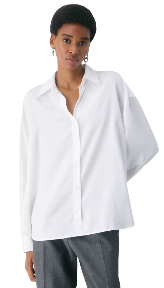 Aritzia’s simple white shirt has a chic hidden placket, which gives it a bit more polish.